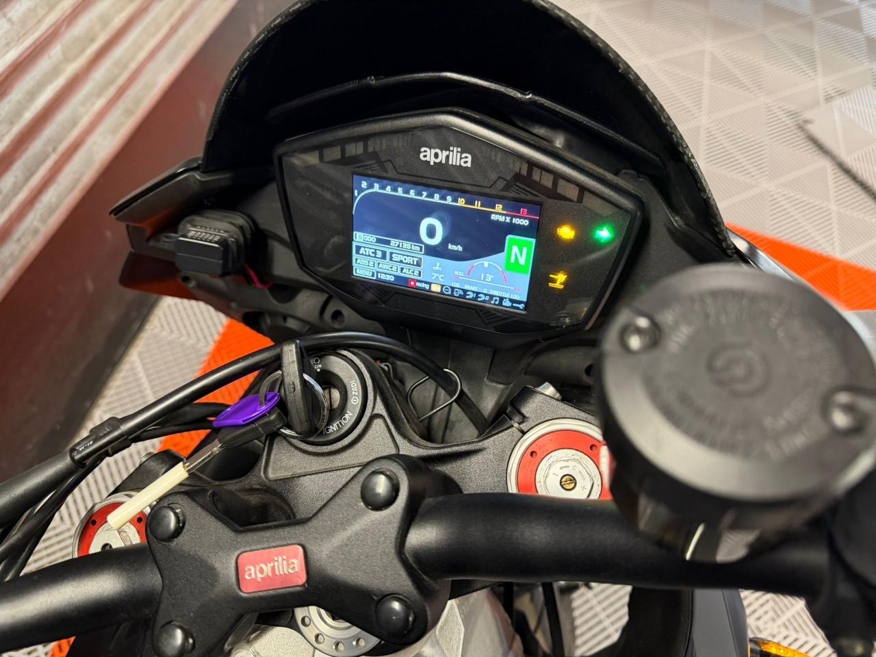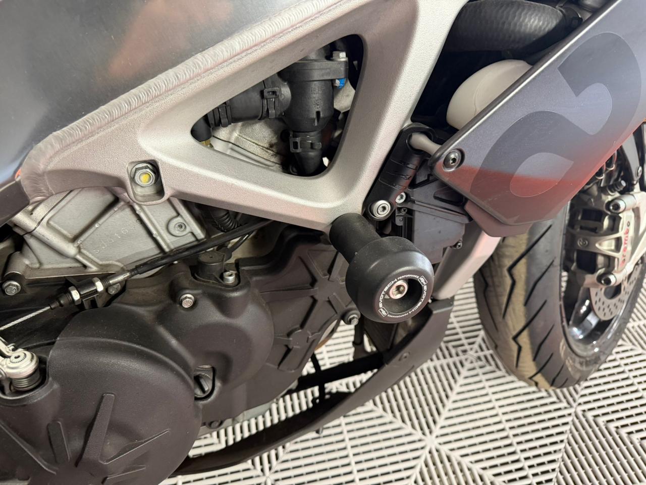 Cette Tuono V4 est équipée d'un silencieux Akrapovic carbone avec reprogrammation associée, et de nombreux accessoires premium, tout en étant livrée avec toutes ses pièces d'origine.